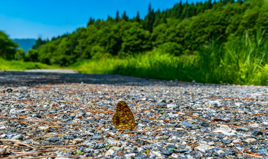 6月29日、岡山県のウスイロヒョウモンモドキに出かける。今年は早い梅雨明けでカンカン照りだがウスイロヒョウモンモドキは気温が上がっても次々に飛び出してくれた。暑さの中で、保護を続ける地元の方も見守ってくれて、なんとか撮影できた。